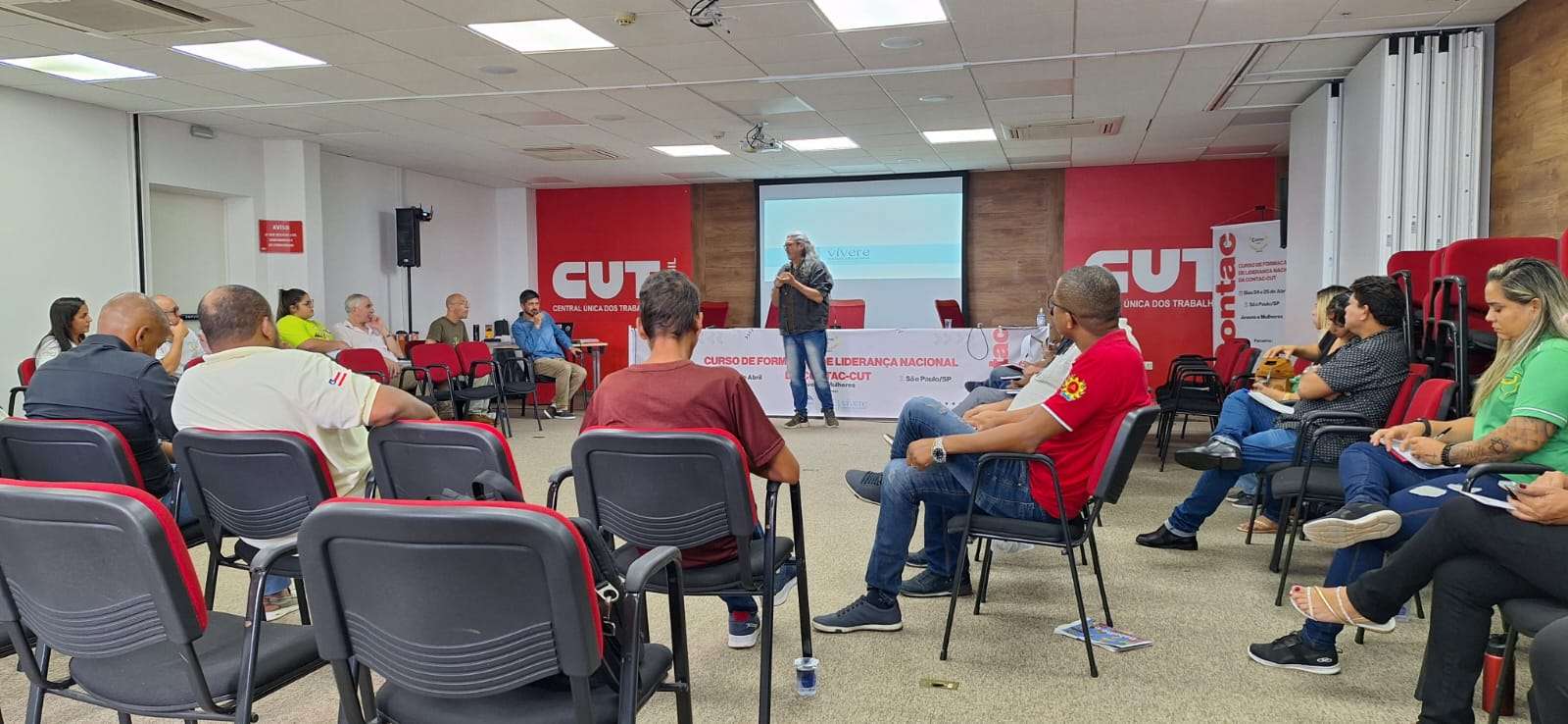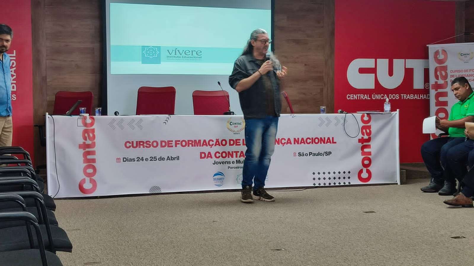 Entre os dias 24 e 25 dia abril os Diretores do Sindicacau, Presidente Ulisses Abade, vice Presidente André Viana e Diretor Jamesson santos participaram do curso de Formação de liderança nacional da contac -cut em São Paulo/sp. Dentre os assuntos abordados, estão as novas formas de organização e fortalecimento da ação sindical nos locais de trabalho.