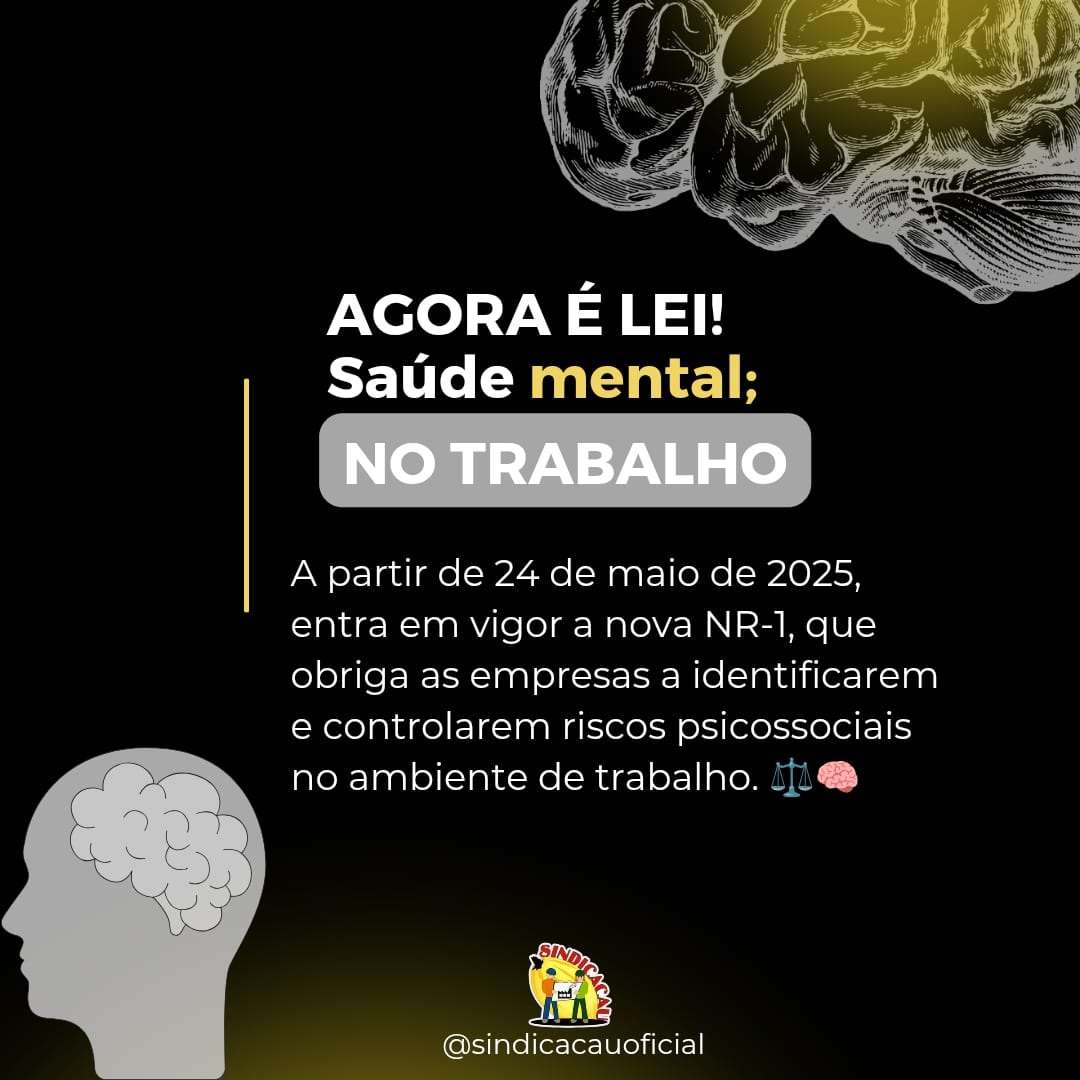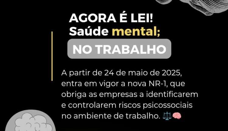 A partir de 24 de maio de 2025, a nova NR-1 entra em vigor, obrigando as empresas a identificar e controlar riscos psicossociais no ambiente de trabalho. ⚖️