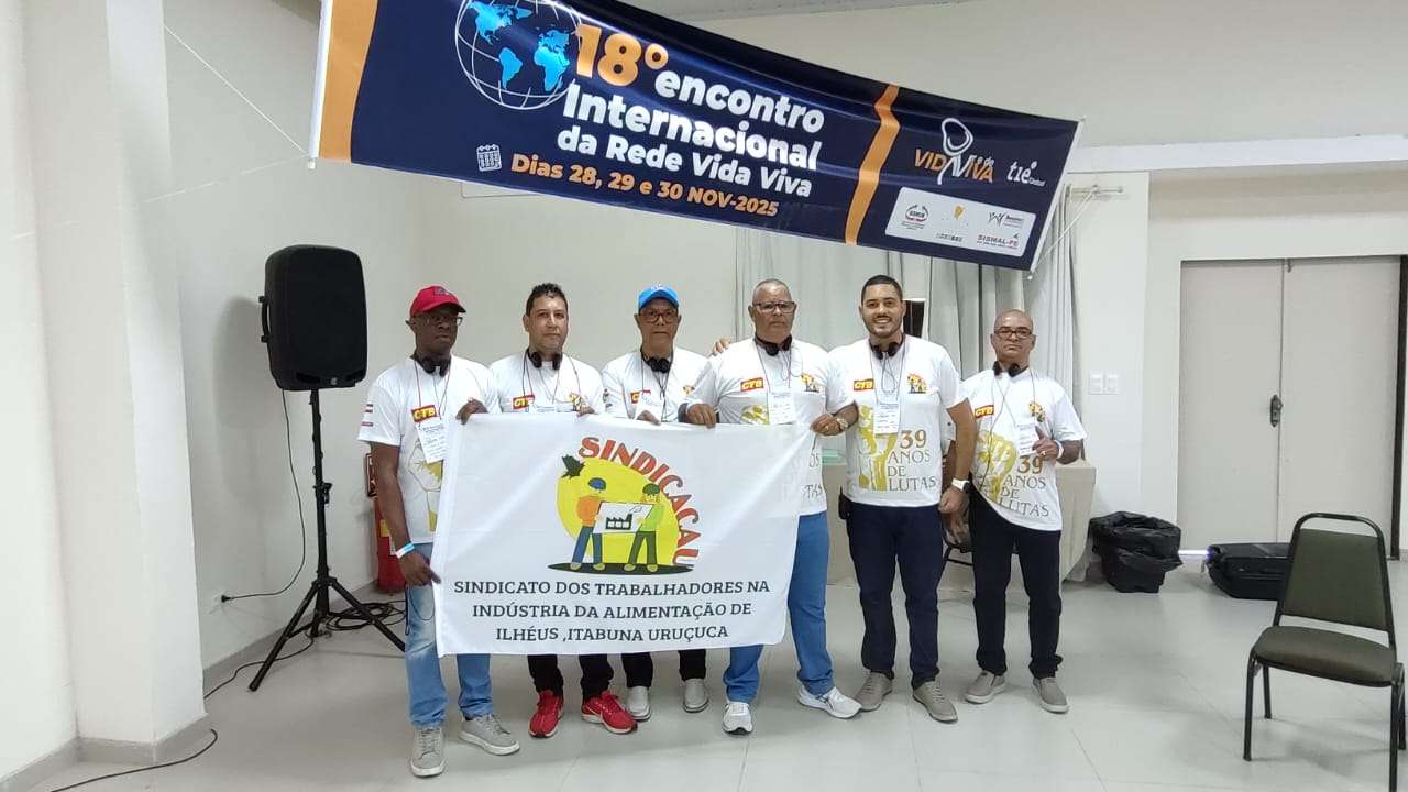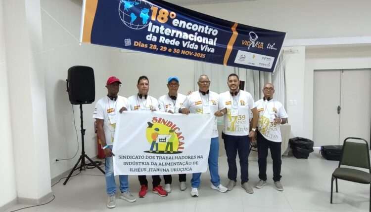 O Sindicato dos Trabalhadores da Indústria da Alimentação de Ilhéus, Itabuna e Uruçuca (SINDICACAU) participou, nos dias 28, 29 e 30 de novembro de 2025, do 18º Encontro Internacional da Rede Vida Viva, realizado em Itamaracá, Pernambuco. O evento reuniu representantes de várias regiões do Brasil e de diversos países, com o objetivo de trocar experiências, fortalecer a organização dos trabalhadores e debater os impactos da digitalização no mundo do trabalho.